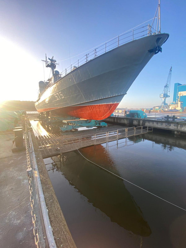 Das Schiff ist wieder an seinem Liegeplatz, Bilder vom Ausdocken und Überführung nach Peenemünde