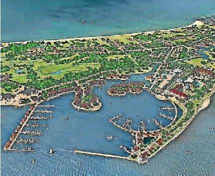 20. Mai 2021: Vier Hotels, rund 290 Ferienhäuser, Therme, Marktplatz, Markthalle , ein Reitstall und Künstlerdorf sollen auf dem Bug ganz im Norden der Insel entstehen, auch eine Kapelle und ein Kino sind vorgesehen.