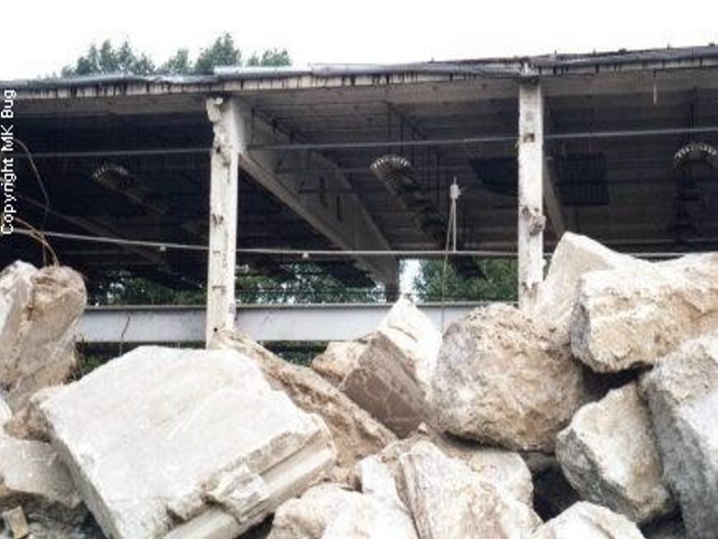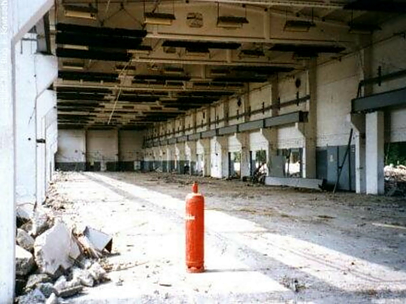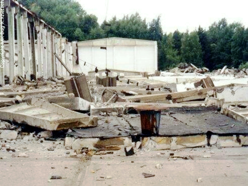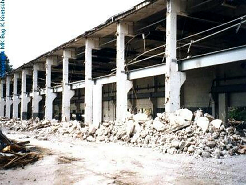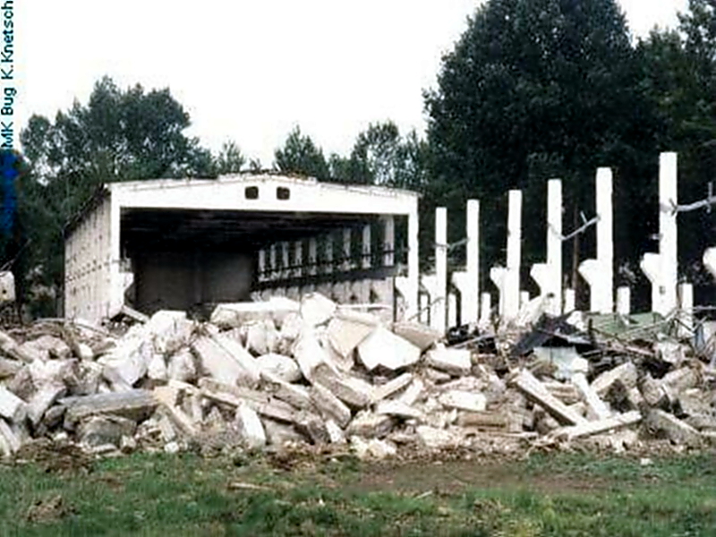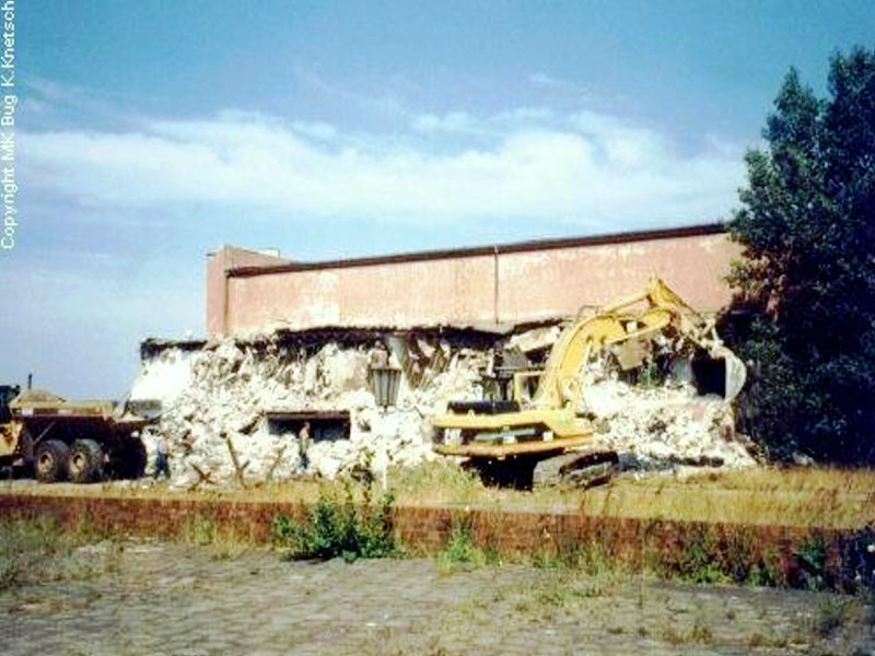 Im Beisein des Arbeits- und Bauministers von Mecklenburg Vorpommern Herrn Holter beginnt am 10.05.2001 offiziell der Abriss der Gebäude. Als gelernter Baufachmann führt er persönlich den "Ersten Bagger".