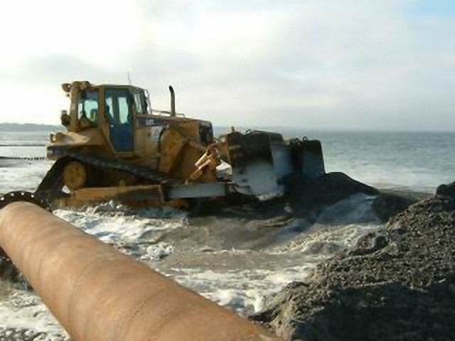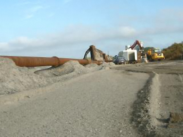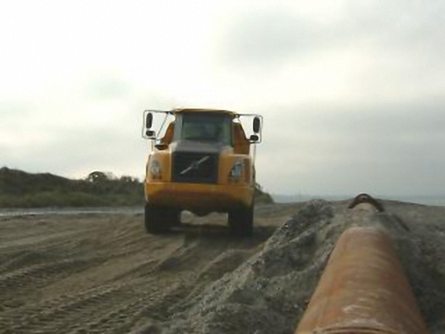 Der Sand und die Steine sind jetzt an der engsten Stelle des Bug angekommen |
