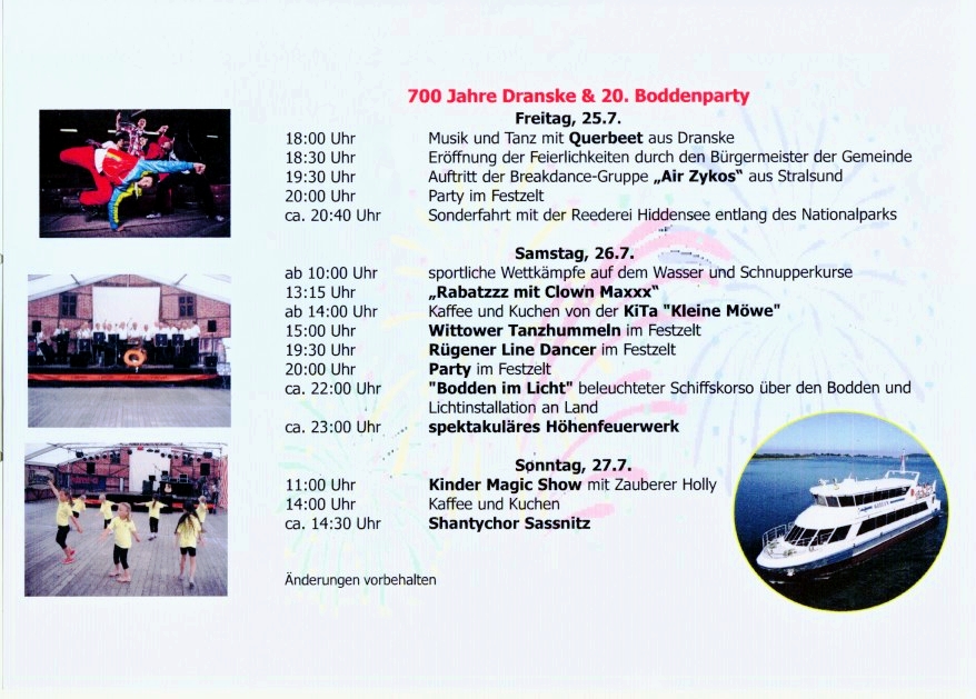 700 Jahre Dranske und 20. Boddenparty 25.07. - 27.07.2014