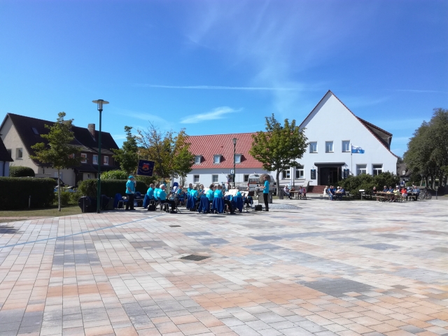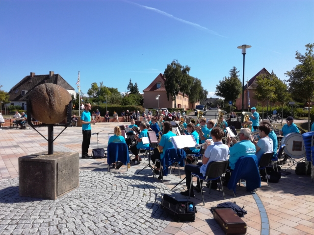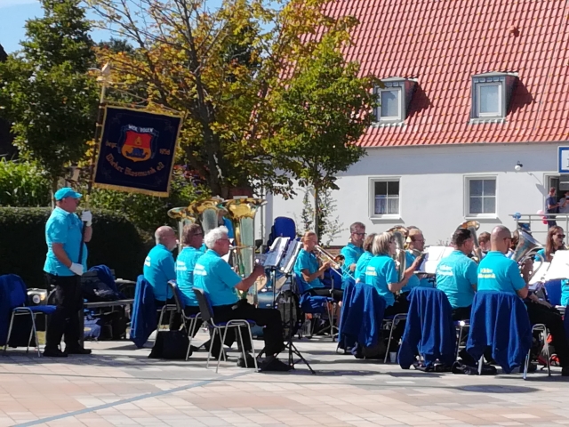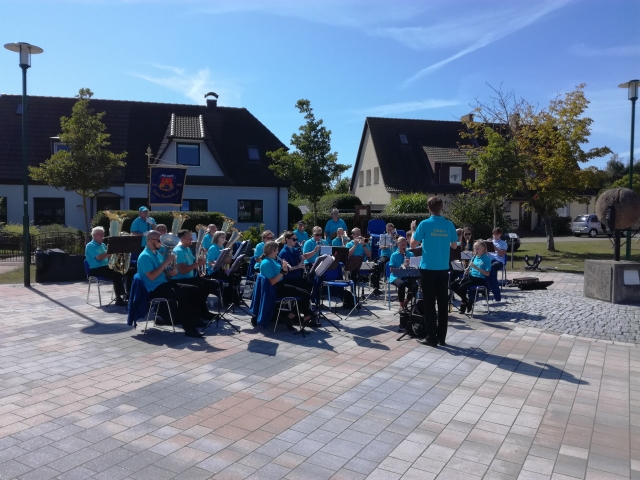 Dranske 15.08.2021 Konzert der Wieker Blasmusiker auf dem Ortsplatz.